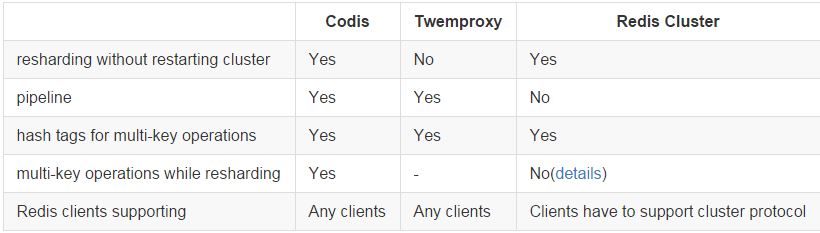之前介紹過的 Twemproxy 是一種Redis代理,但它不支持集群的動態伸縮,而codis則支持動態的增減Redis節點;另外,官方的redis 3.0開始支持cluster。