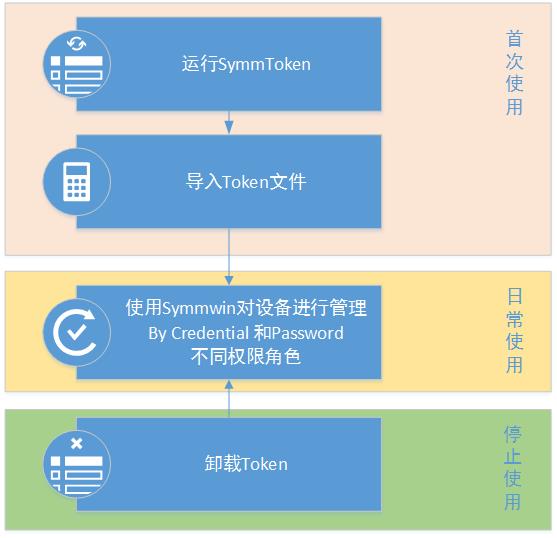 Symmtoken 2.1 使用流程圖如下,簡單到隻需要一個token文件,無任何外接設備,安全可靠。