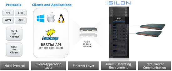 Isilon使用OneFS操作係統完成同時處理多種訪問方法,如下圖所示: