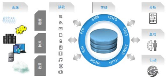 l 采用流式處理或者批處理從各種來源(如文件共享,歸檔,Web應用程序,設備和雲)接受數據;