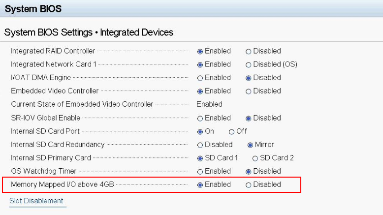 VMware ESXi 5.1.x 和5.5.x 不支持設置了大於4GB MMIO空間的主機係統,如果在此環境下安裝ESXi係統,會出現紫屏及其它不可預知的問題, 詳細說明可參考link