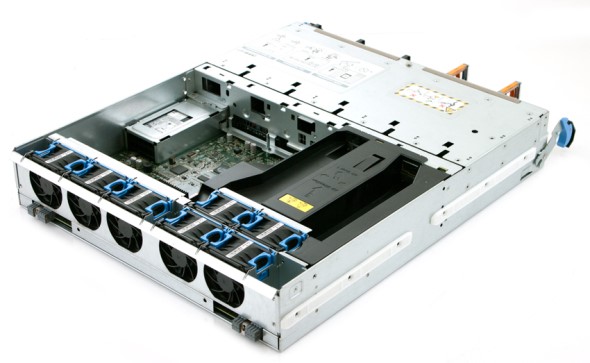可以看出DD2200的設計非常緊湊,磁盤和控製器中間是一排風扇,然後是BBU,內存等。